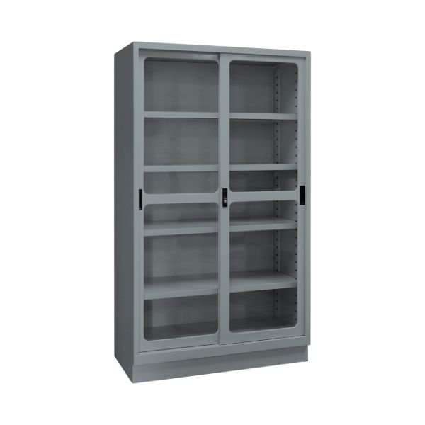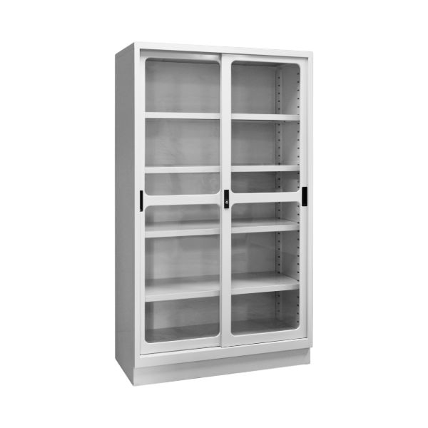 Premium quality storage cabinets with Flexi-Glass sliding doors for various storage needs.