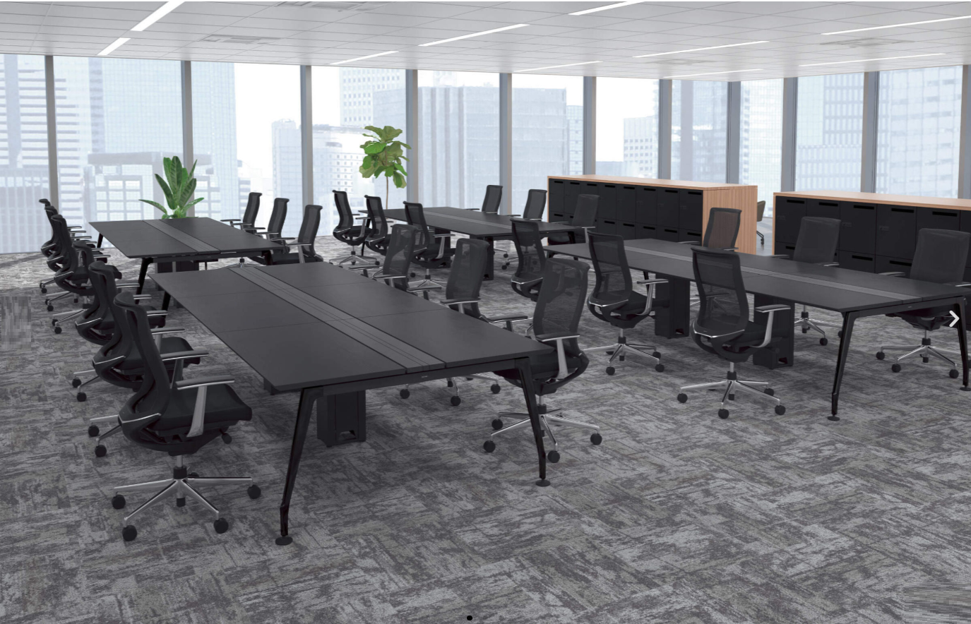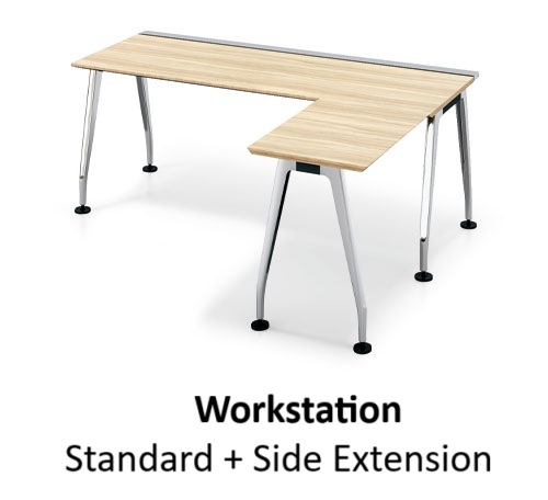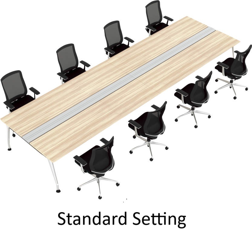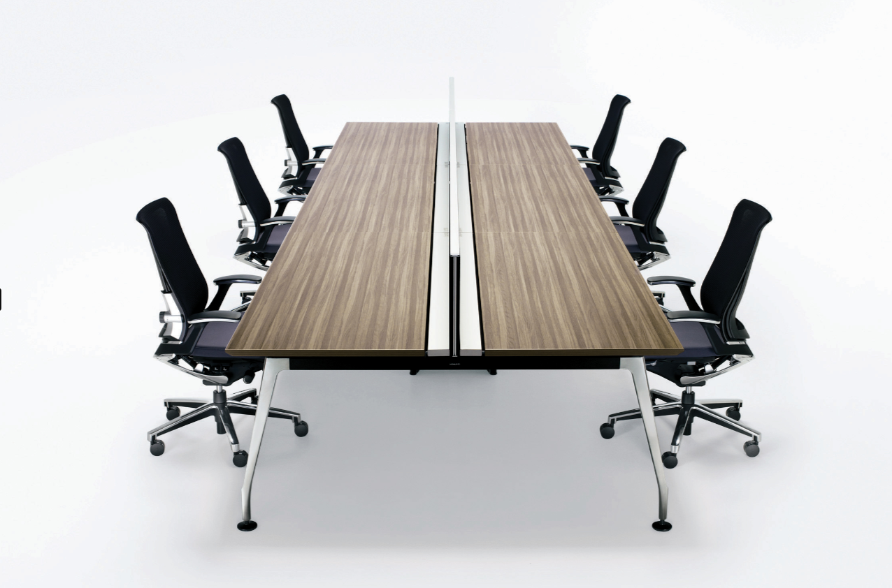 The joy of filling a wide tabletop with new ideas. The airy design, consisting of sharp and soft aluminum polished legs, glossy black painted legs, and a slim and beautiful top plate, adds quality to the space.