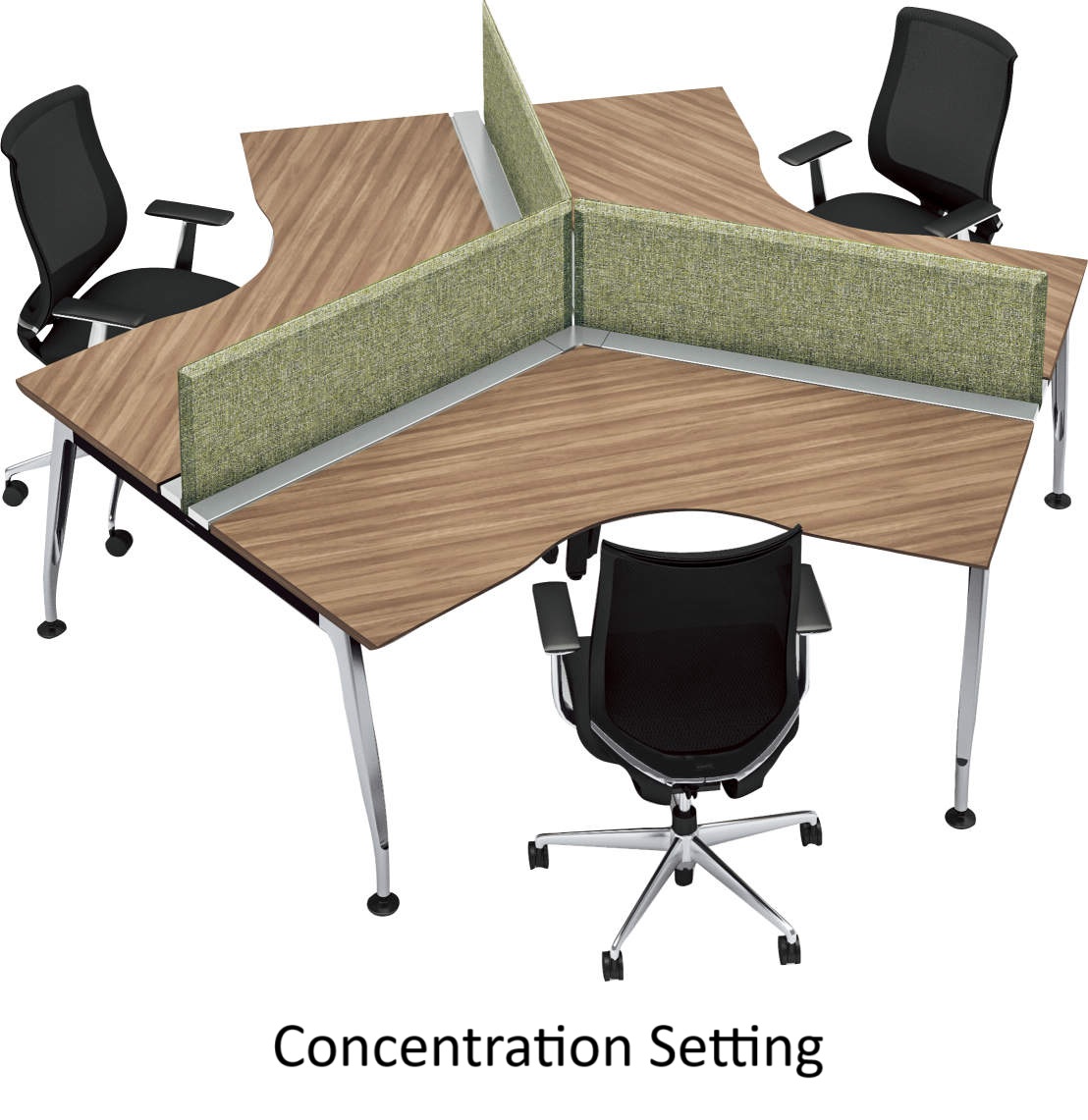 Presenting a rich texture to the office. Carefully selected materials appeal to the five senses, such as the top plate that reproduces the texture of wood, the aluminum legs that shine beautifully, and the fabric that feels good to the touch.